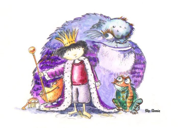 (星期天,掃完地洗完衣服,獨自在城堡裡的王子,只有怪獸陪伴........)